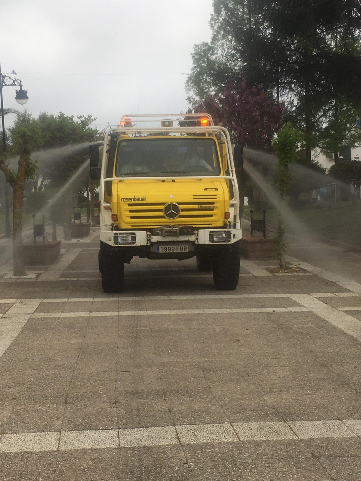Durante la jornada han realizado fumigaciones desinfectantes por las vías del municipio con el vehículo del retén contra incendios.