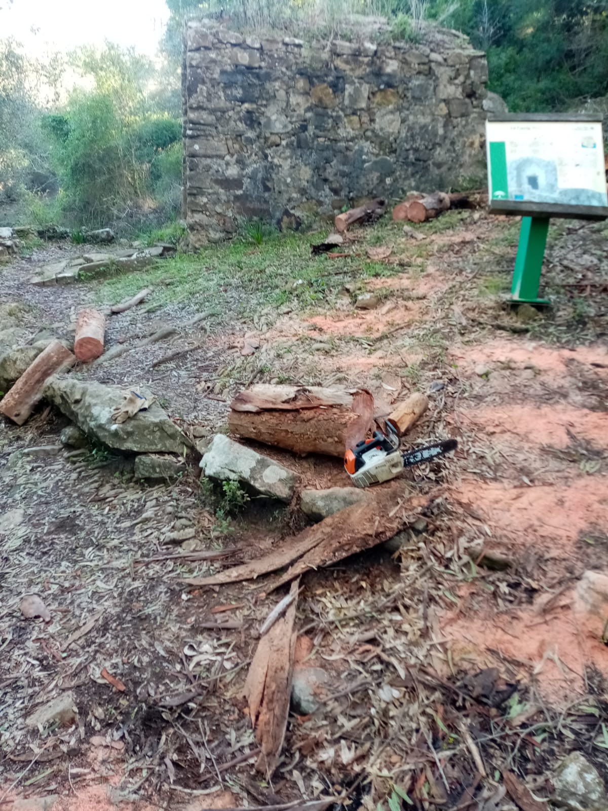 El desbroce y limpieza de la vegetación forestal en terreno de competencia municipal está ejecutándose por dos operarios contratados a través del Plan de Cooperación Local como motoserristas.