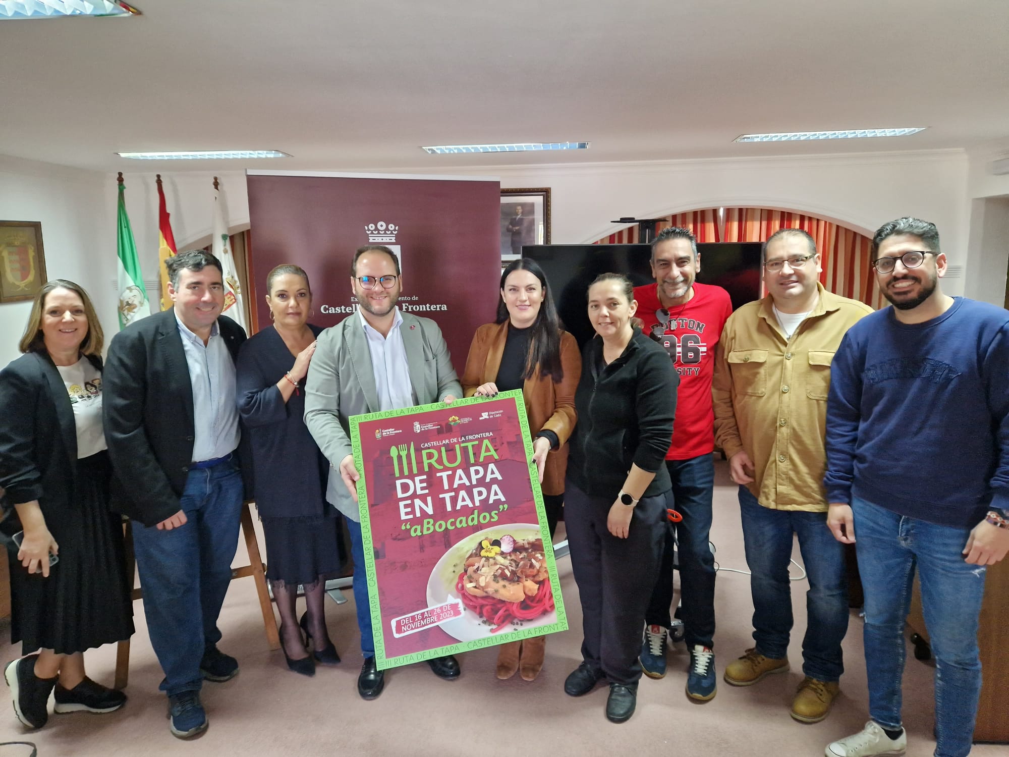 El alcalde de Castellar de la Frontera, Adrián Vaca, la teniente alcalde y concejal de Fiestas, Victoria González, y la concejal de Turismo, Marina Saraiba, han presentado la III Edición de la Ruta ‘De Tapa en Tapa aBocados’, que se celebra a partir de la semana que viene, del jueves 16 al domingo 26 de noviembre.